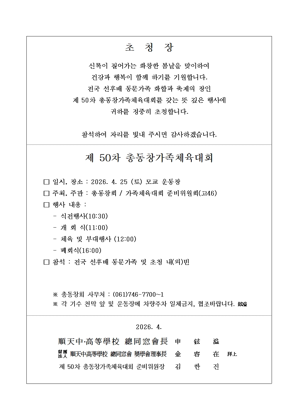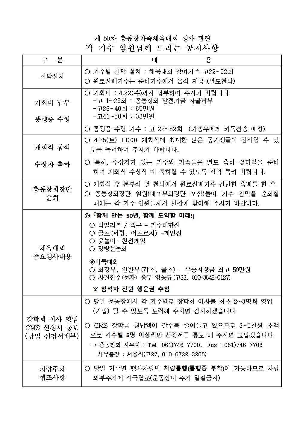 제50차총동창가족체육대회 안내